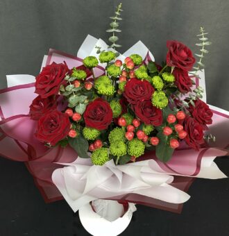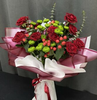 Букет цветов ‘Зелёно-алый микс’ (ВН)