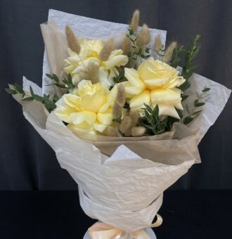 Курьер заберёт букет сразу после сборки. Доставляем в любой район Великого Новгорода — от Торговой стороны до Деревяниц. Работаем ежедневно с 8:00 до 22:00.