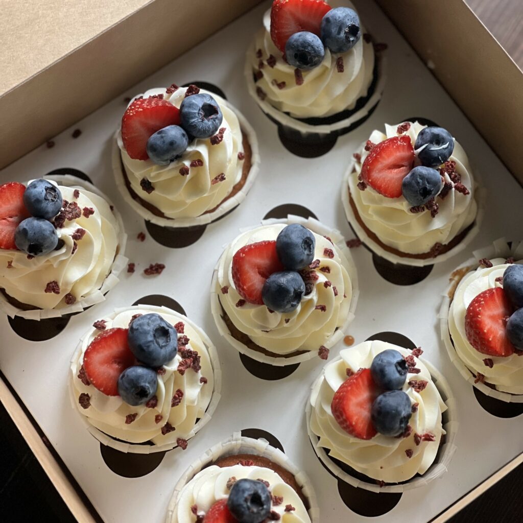 - Приготовление капкейков под заказ из свежих ингредиентов и аккуратная упаковка.
