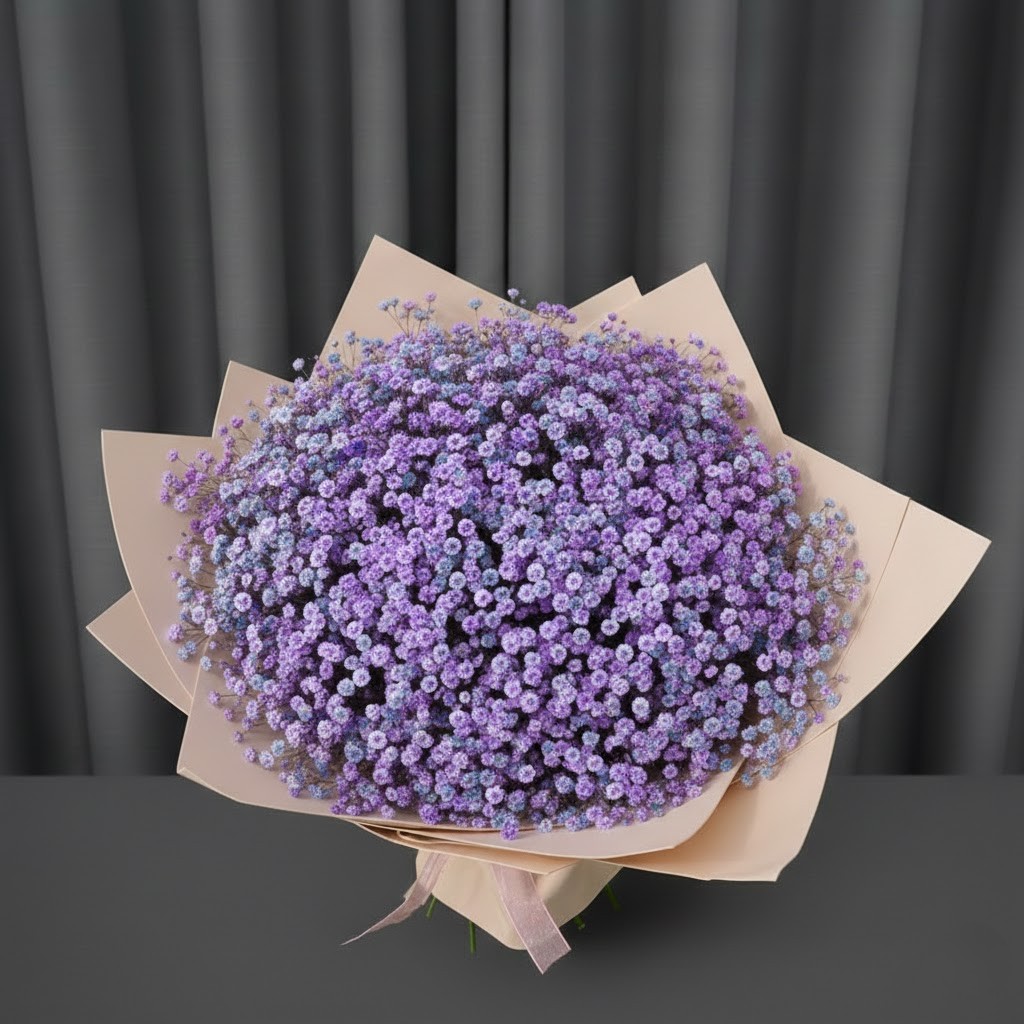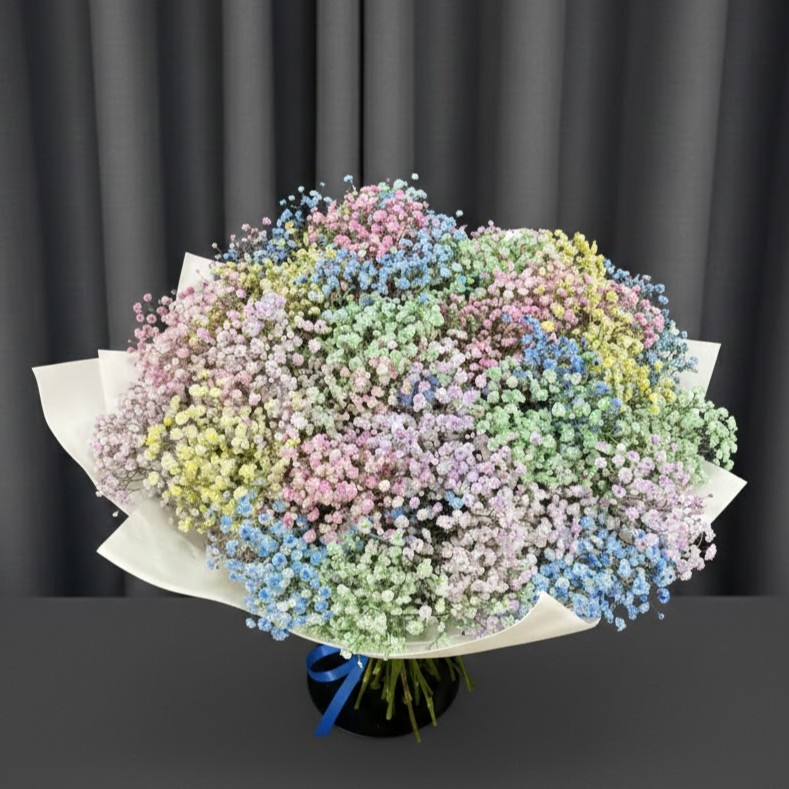 Возможность корректировки оформления зависит от времени до доставки и наличия нужных оттенков на складе. Уточните пожелания к упаковке и цвету гипсофил при оформлении заказа или обсудите их с менеджером, чтобы подобрать оптимальный вариант.