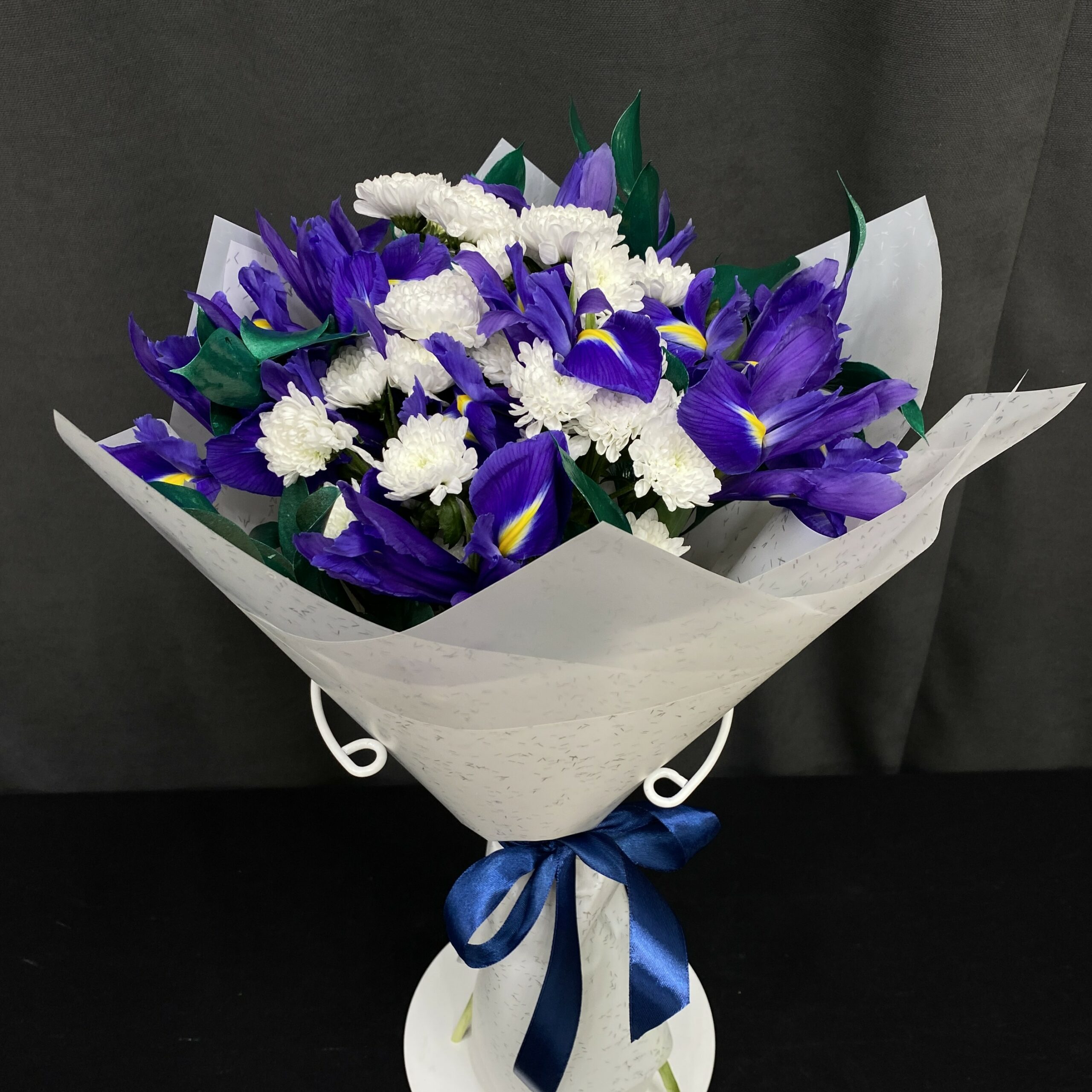 Не упустите возможность сделать день особенным! Закажите наш букет из синих ирисов и белых хризантем прямо сейчас и подарите радость своим близким!