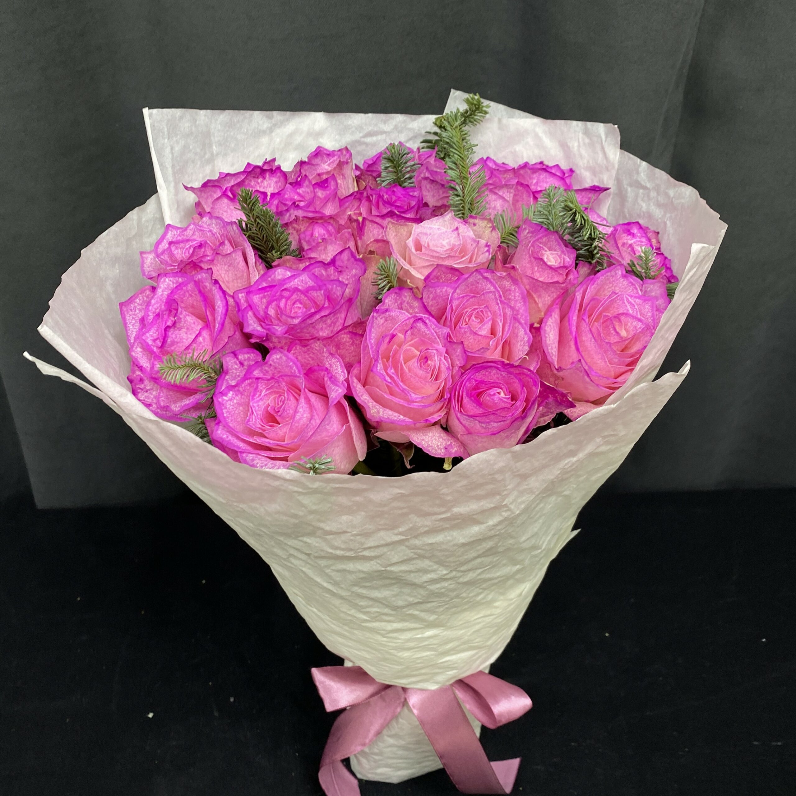 Состав: Нобилис, Роза (Кения) 40см – 19 шт, Лента (атласная), Упаковка (дизайнерская пленка).