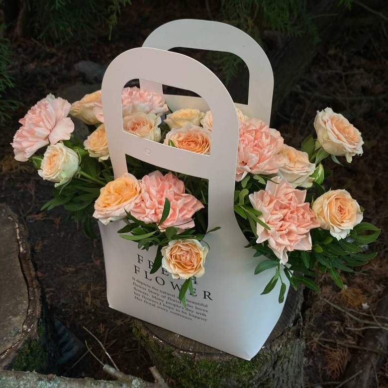 - Долговечность: Гвоздики и кустовые розы известны своей стойкостью. В сочетании с фисташкой, букет «Персиковый Поцелуй» долго будет радовать своей свежестью и красотой.