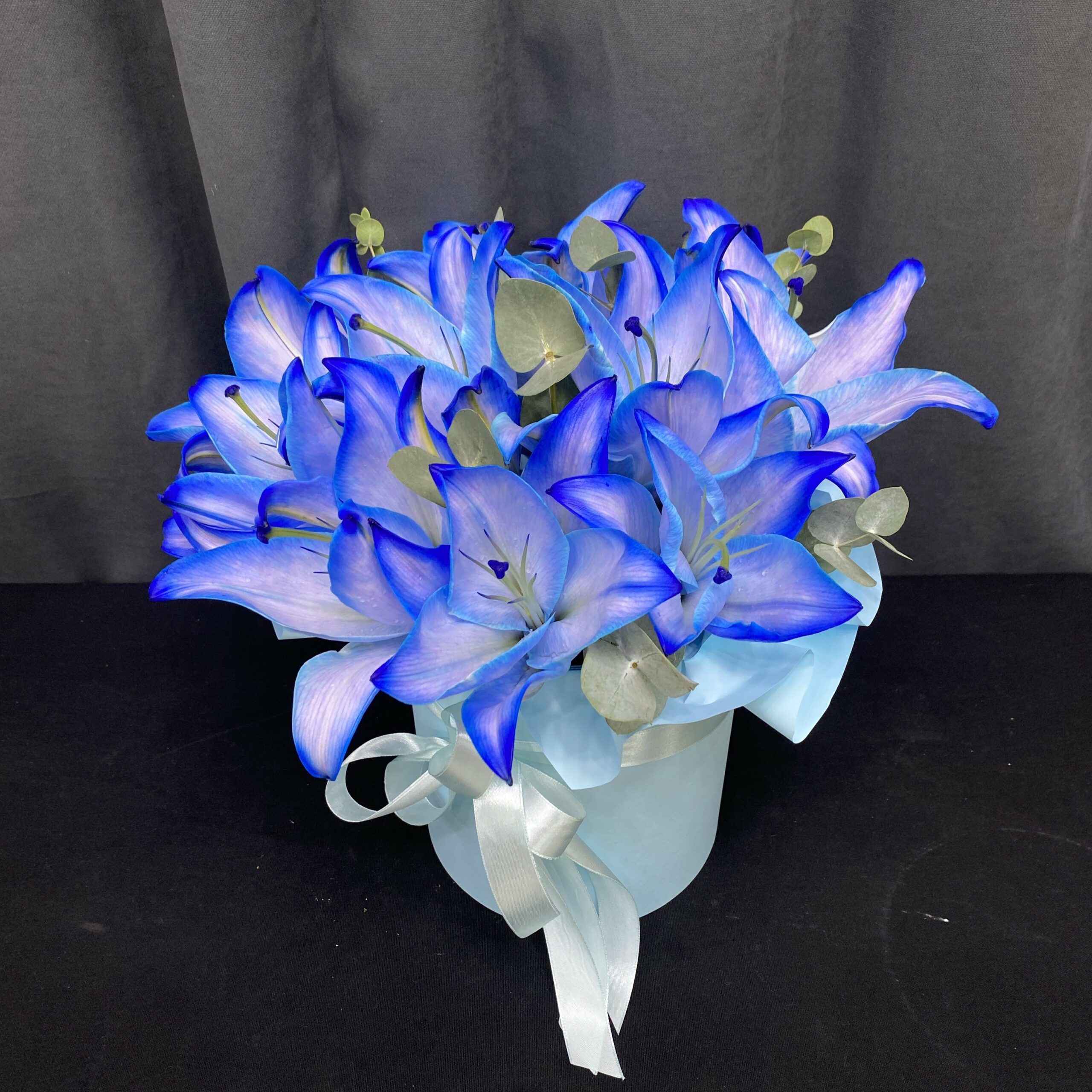 Погрузитесь в мир утонченной красоты с нашим восхитительным букетом из синих лилий!