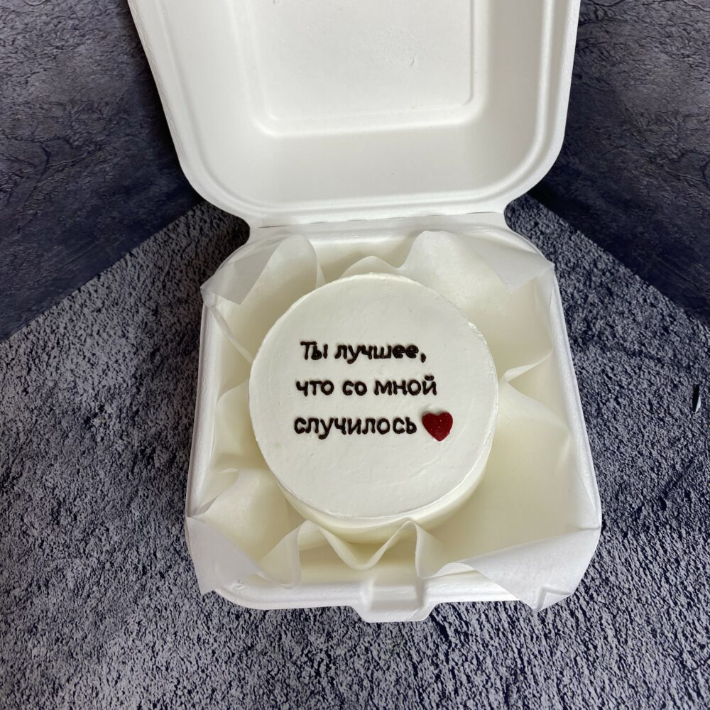 Ищете идеальный способ выразить самые глубокие чувства? Представляем наш бенто-торт «Любовь» – это больше, чем просто десерт, это искреннее послание, запечатленное в каждом кусочке. На его поверхности – нежные слова: «Ты лучшее, что со мной случилось». Идеальный подарок, чтобы показать, как сильно вы цените человека, который изменил вашу жизнь.