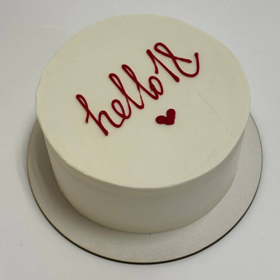 - Личное поздравление: Надпись «Hello 18» делает этот торт идеальным символом совершеннолетия – сладким началом нового, захватывающего этапа жизни, наполненного свободой и возможностями.