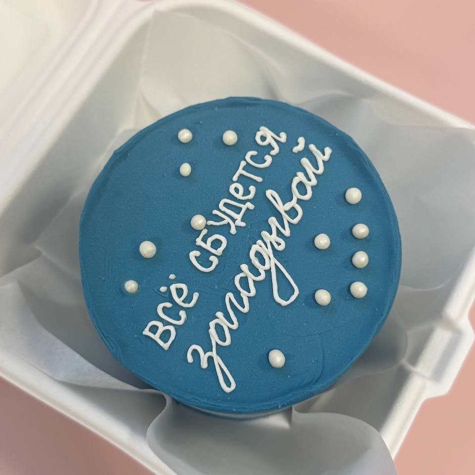 Встречайте наш особенный бенто-торт «Заветное желание» – это не просто десерт, это твой личный ритуал для исполнения самой заветной мечты! Идеальный способ побаловать себя, сделать особенный подарок или просто загадать самое сокровенное под каждую ложечку этого волшебства. Ведь, как гласит надпись: «Все сбудется, загадывай!»