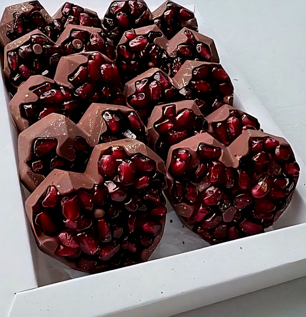 - Натуральные ингредиенты: Мы используем только свежие гранаты и высококачественный шоколад.