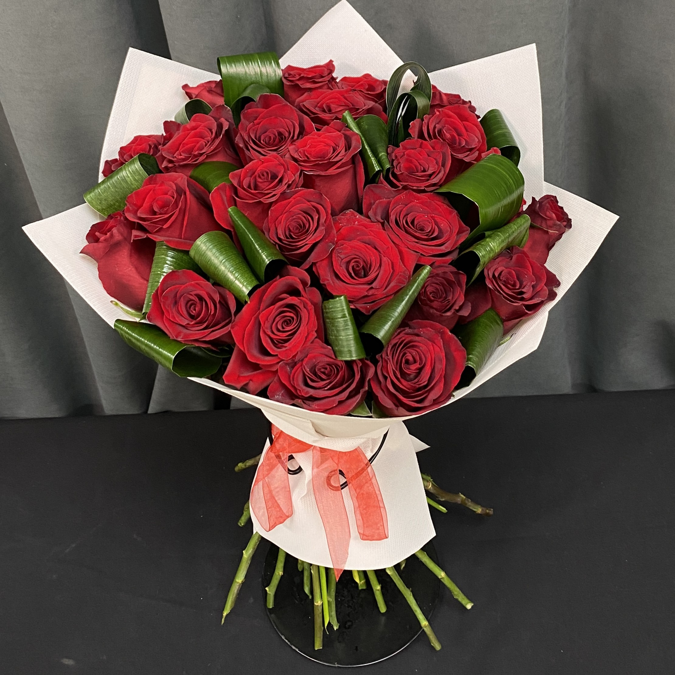 Как и прежде, аспидистра олицетворяет стойкость, долговечность и надежность. Ее темно-зеленые листья подчеркивают красоту ярких роз, добавляя композиции баланса и гармонии.