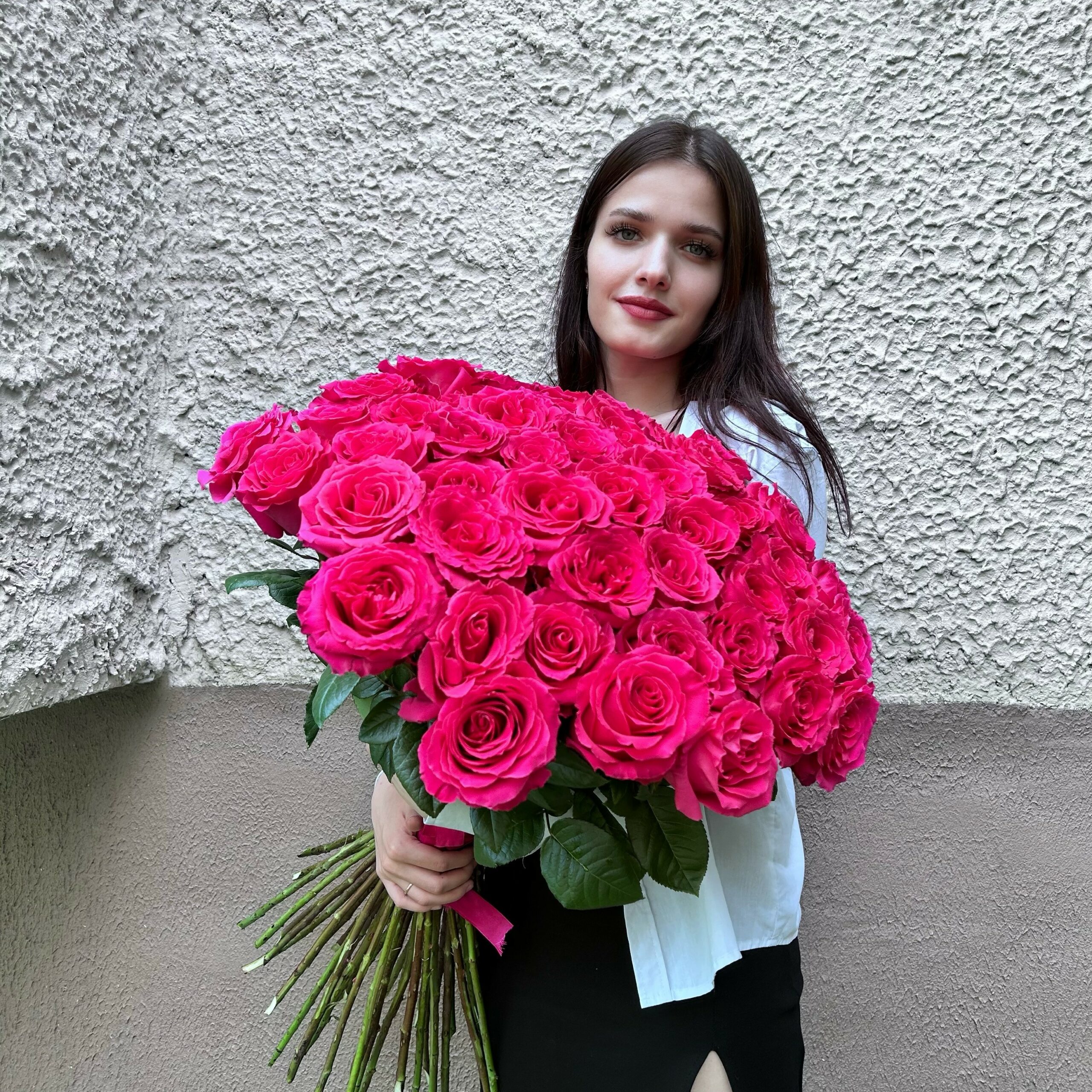 Закажите букет малиновых роз из Эквадора длиной 60 см и подарите незабываемые эмоции, выразив свои чувства с помощью страстной красоты и яркого цвета!