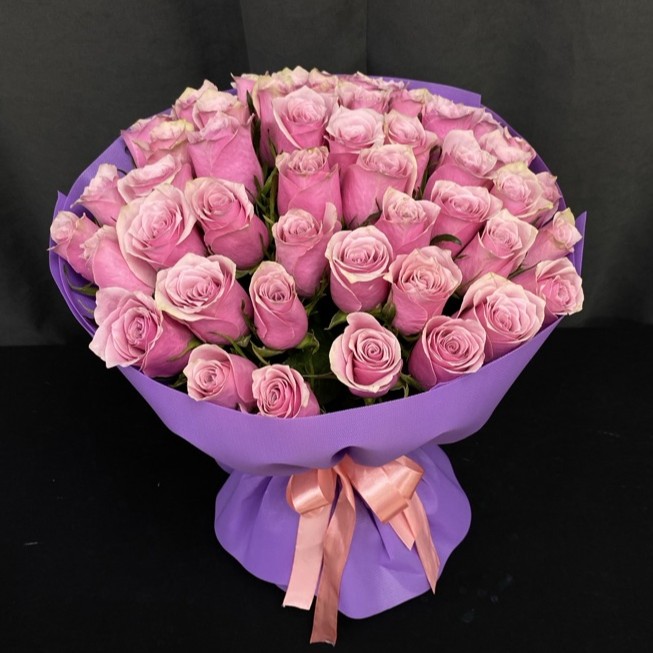 Монокомпозиция из роз одного оттенка представляет собой самостоятельный букет, где равномерный розовый цвет и форма бутонов формируют цельное визуальное восприятие без необходимости в дополнительных акцентах. Отсутствие других растений позволяет сосредоточиться на фактуре лепестков и общей структуре сборки. Такие букеты выбирают для ситуаций, предполагающих классическую подачу с мягким цветовым решением.